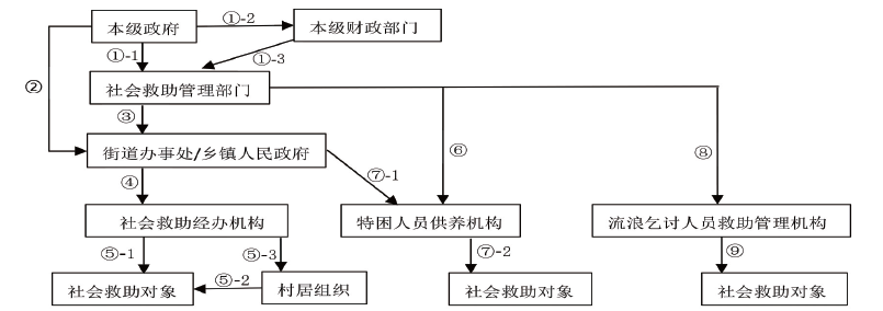 | 本级政府与社会救助管理部门的 关系(标识为①-1) | 本级政府 | 社会救助管理部门 | 社会救助管理部门及其主要领导人 |